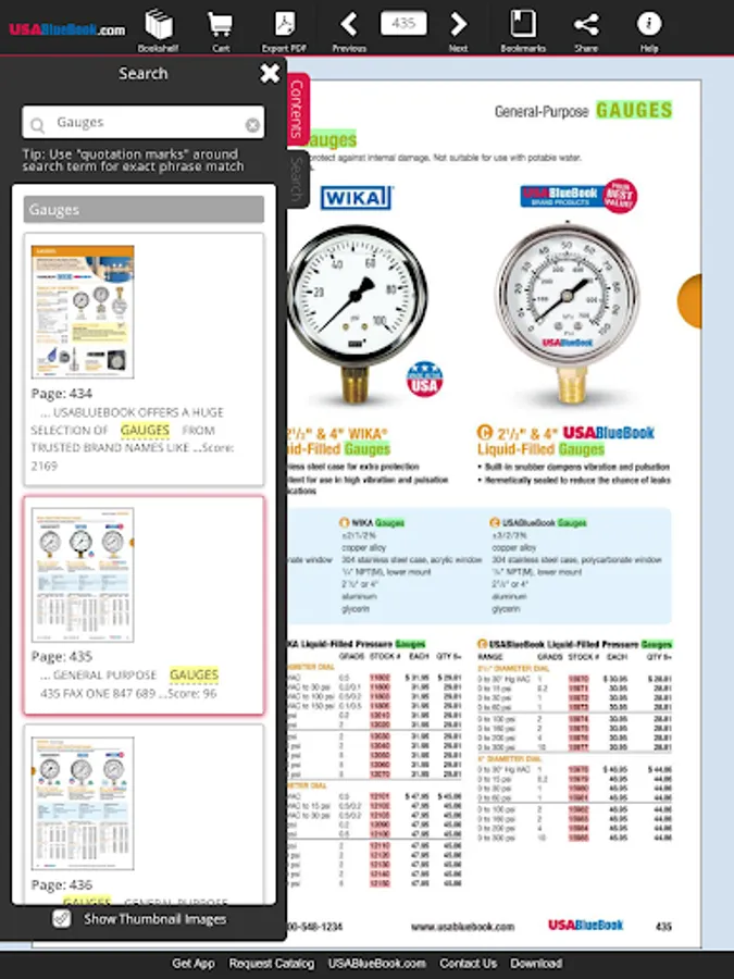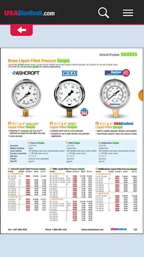 • Links to USABlueBook’s website where you can view thousands of product manuals, performance specification sheets, MSDSs and more!