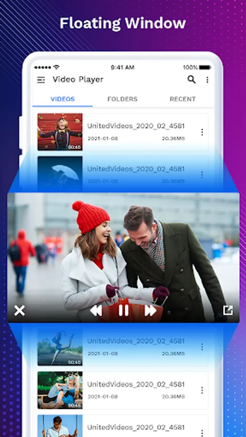Watch your videos in full screen or use the floating popup for multitasking, customize the size to your needs, and move the floating popup player wherever you want on the screen.