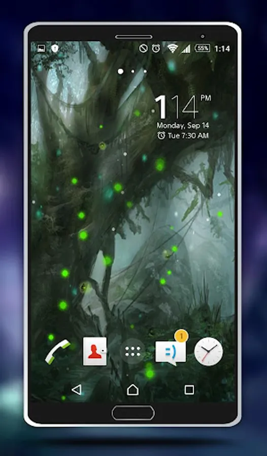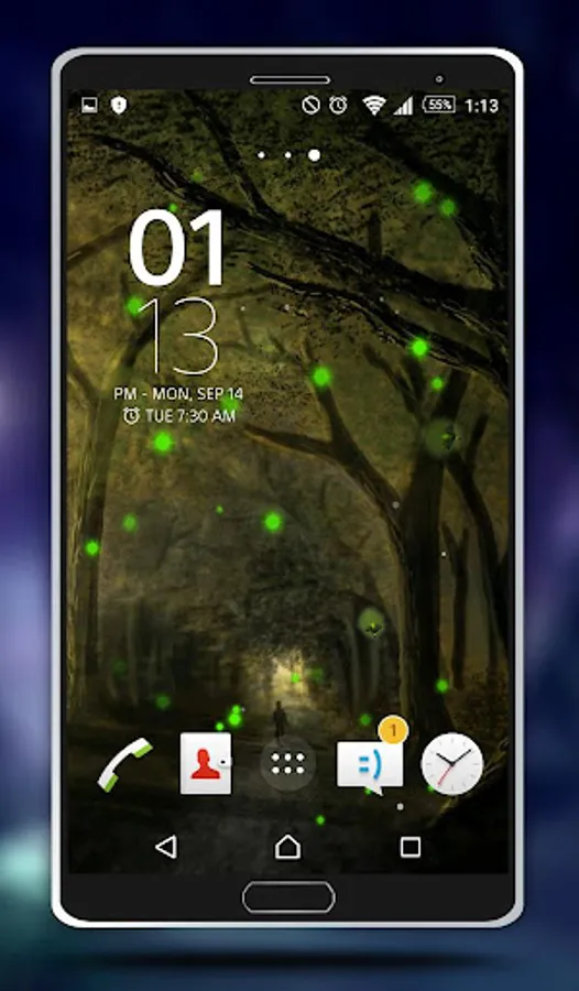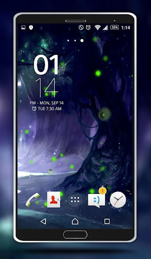How to set this dynamic Firefly screensaver on the screen of your phone: Home → Applications → Settings → Display → Wallpapers → Home screen wallpaper → Live wallpapers → Firefly Live Wallpaper