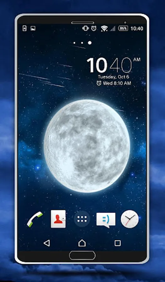 How to set this dynamic Full Moon screensaver on the screen of your phone: Home → Applications → Settings → Display → Wallpapers → Home screen wallpaper → Live wallpapers → Full Moon Live Wallpaper