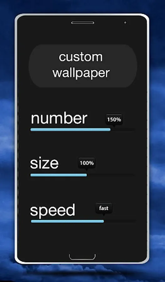 - custom size, number and speed of moon, cloudy, comet, meteors