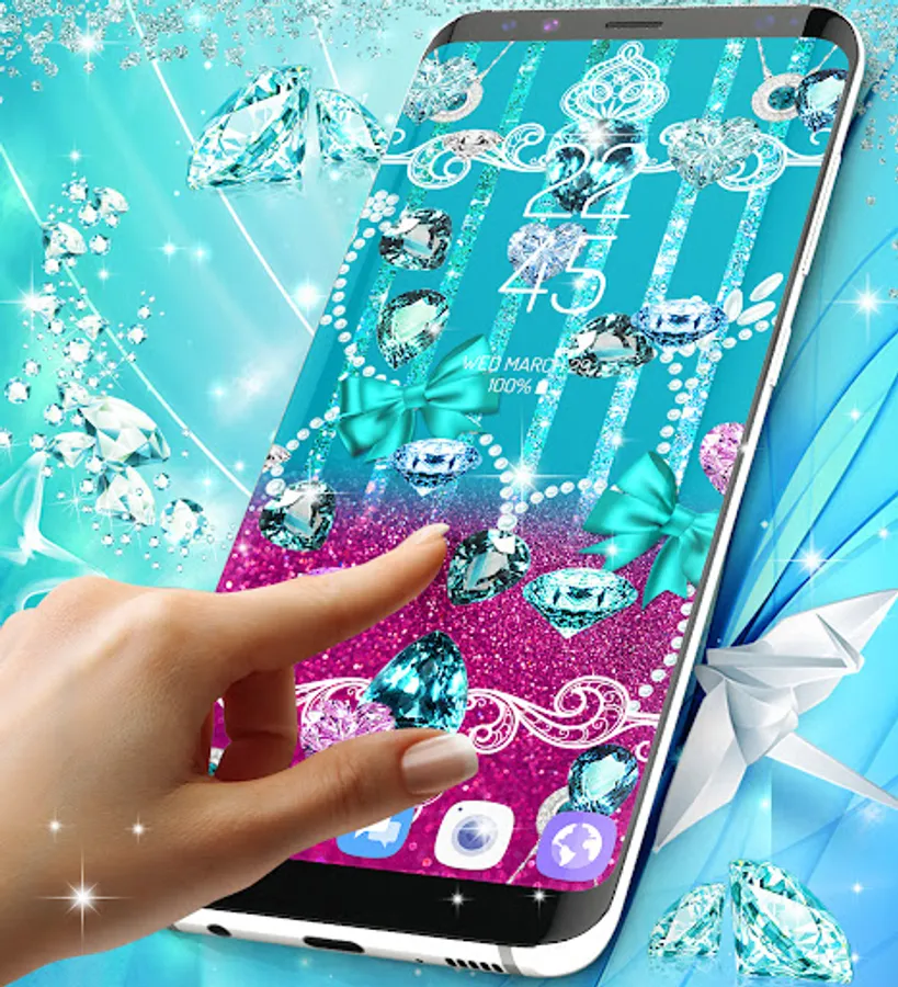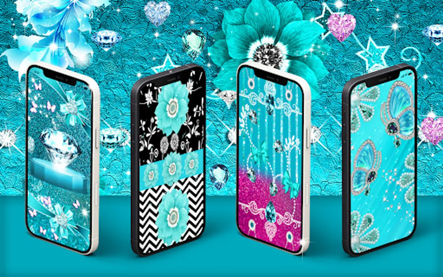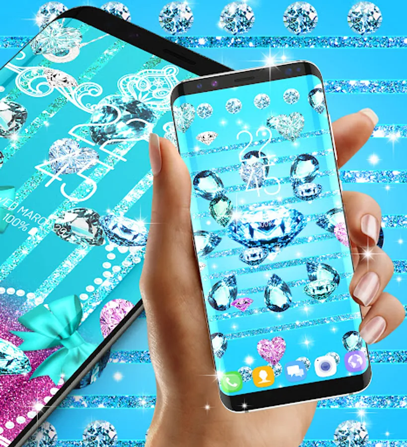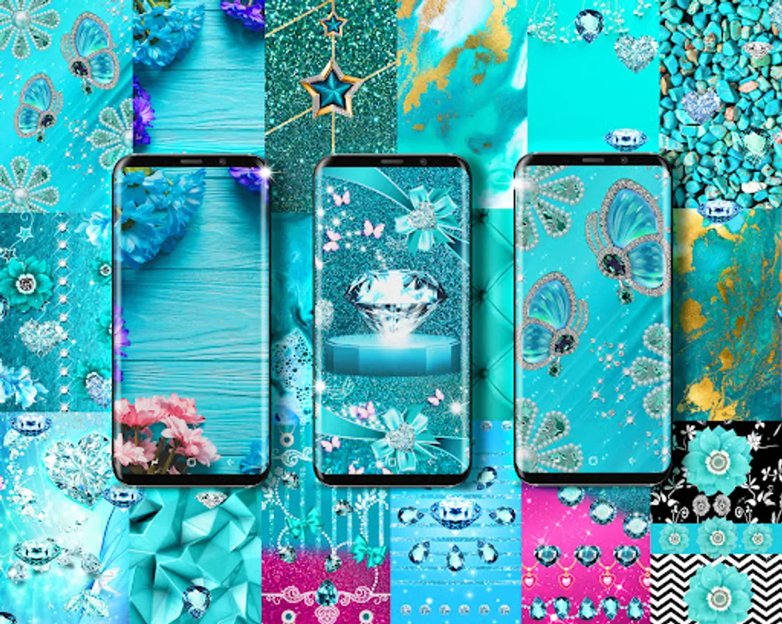 Turquoise elements are looking amazing in general and we thought it will look great on your android phone too. We added elements like glitter and a blue tone to make it look luxurious and special.