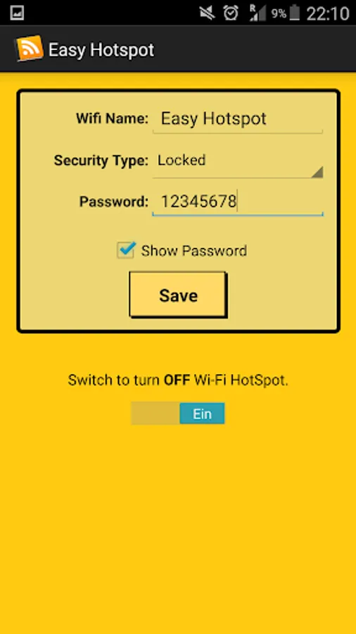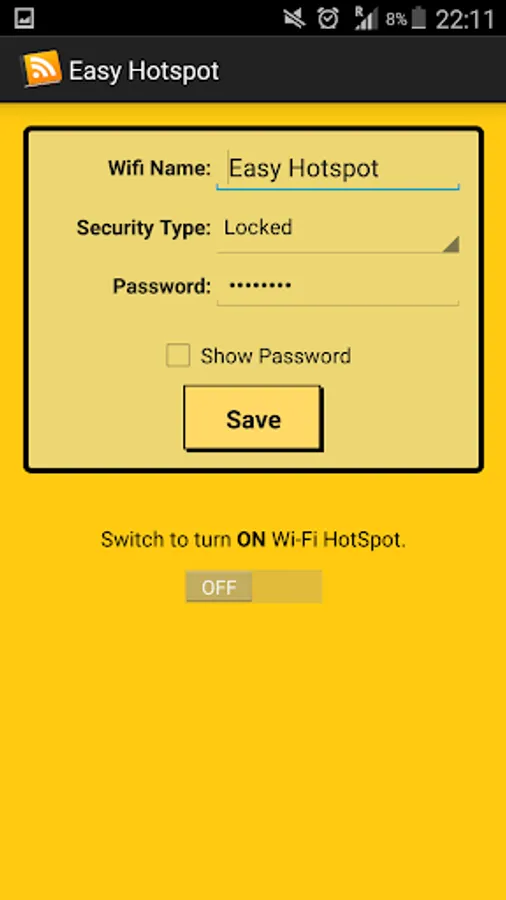 This Hotspot , which has also a widget, will allow you to turn on the portable WiFi hotspot on your Android smartphone with a touch. İt is easy to use , total free and you can create your personal hotspot.