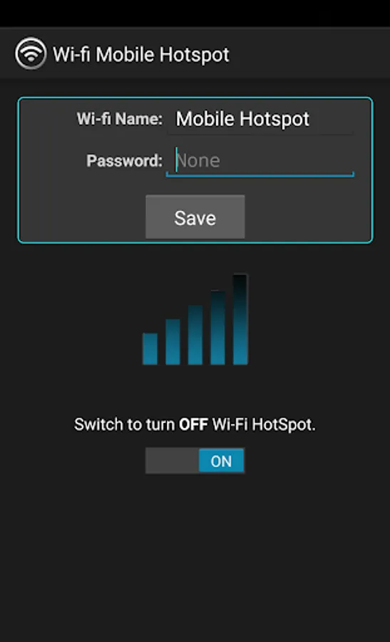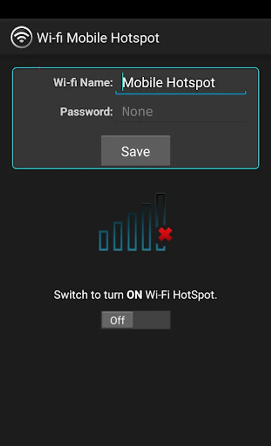 This Hotspot , which has also a widget, will allow you to turn on the portable WiFi hotspot on your Android smartphone with a touch. İt is easy to use , total free and you can create your personal hotspot.
