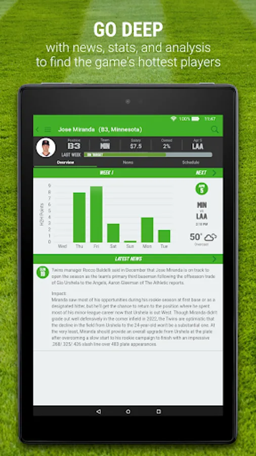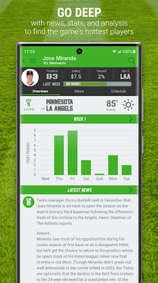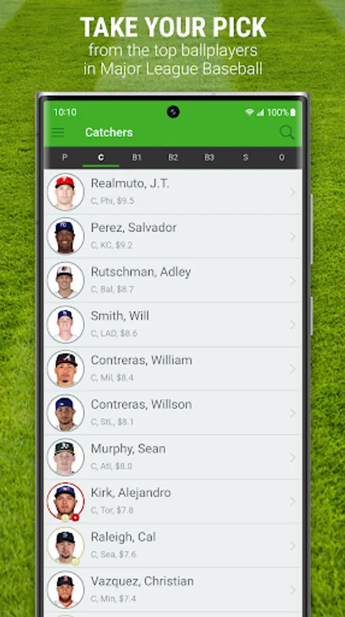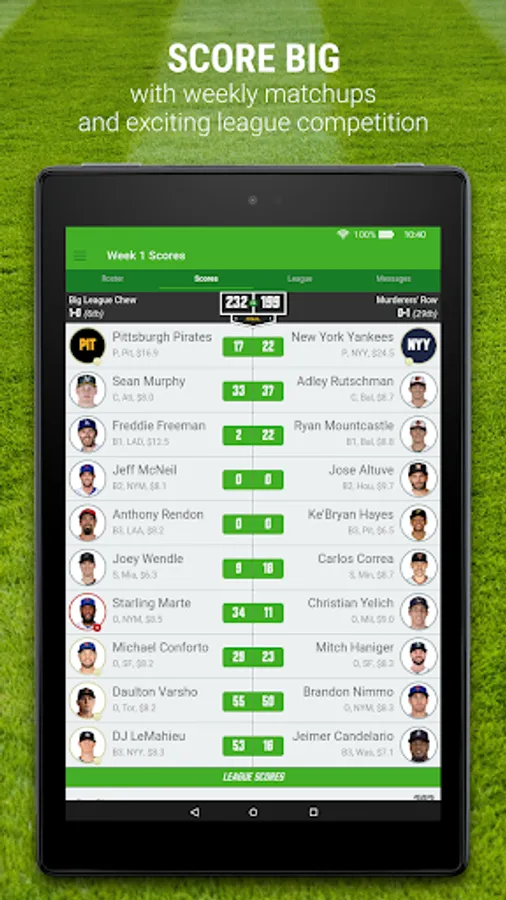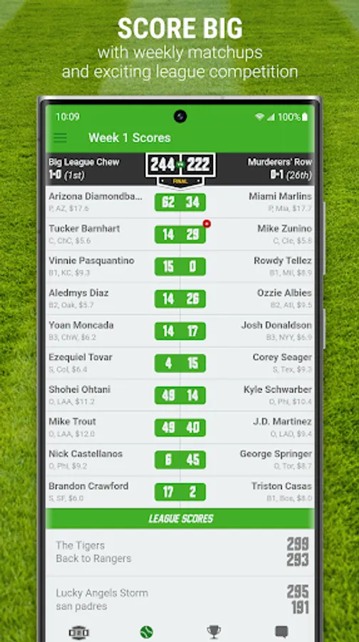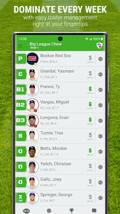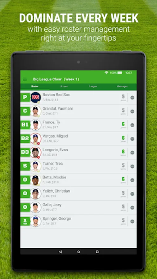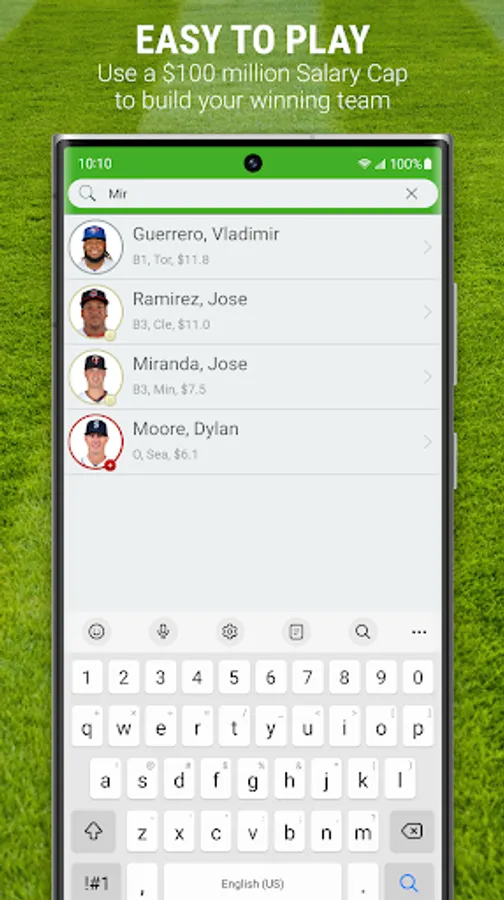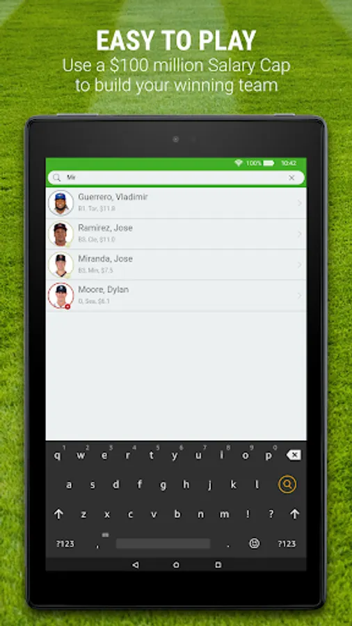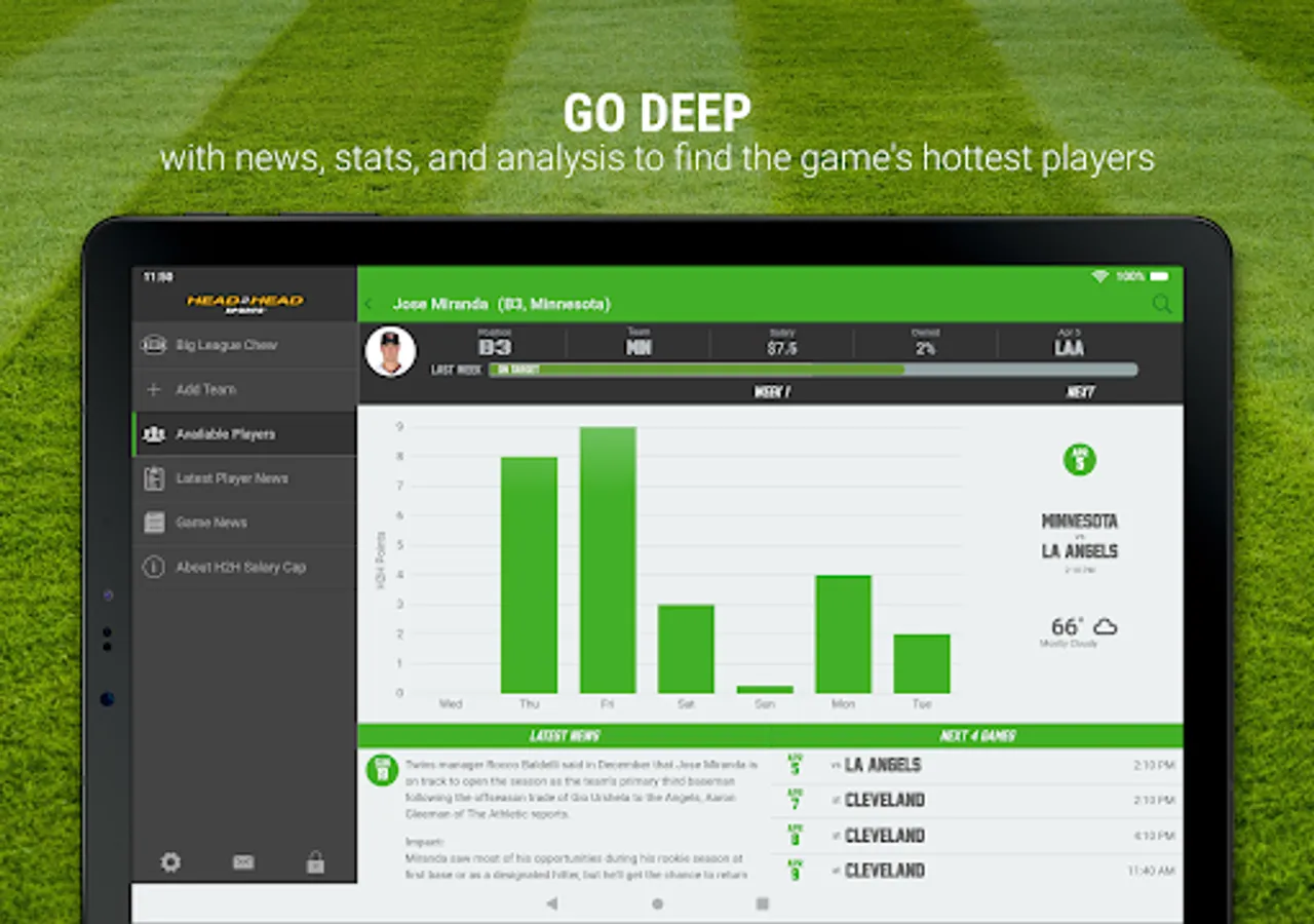 Using a salary cap of $100 Million, pick a team of 8 pro baseball players, a utility player and a pitching staff that you think will score the most points each week using the unique Head-2-Head scoring system.