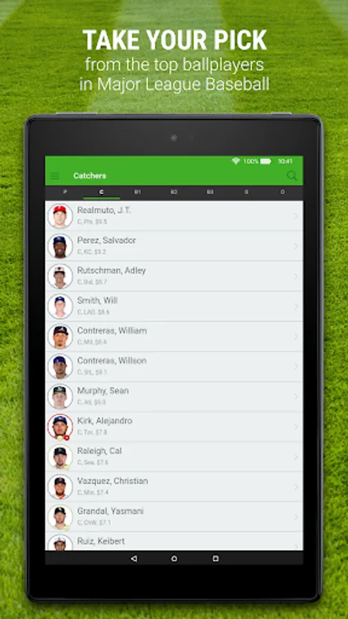 All players have been assigned a salary based on past performances and expected performance this season. You must choose 1 Catcher, 1 First Baseman, 1 Second Baseman, 1 Third Baseman, 1 Shortstop, 3 Outfielders, 1 Pitching Staff and 1 Flex Position (any player - just not a second pitching staff). Your players will earn Head2Head Fantasy Points based on their actual on-field performance.
