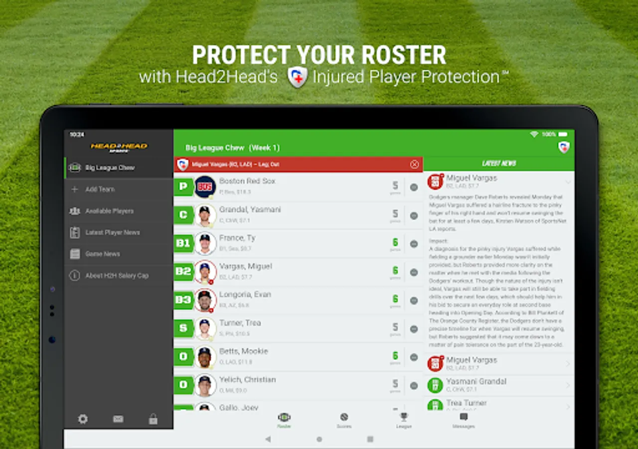Freak injuries. Last-minute benchings. Canceled games. Sometimes the season can be a bit unpredictable. But with H2H's Injured Player Protectionâ„ , you can sleep soundly knowing that if the unexpected happens to someone in your lineup, you're automatically covered.