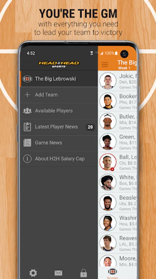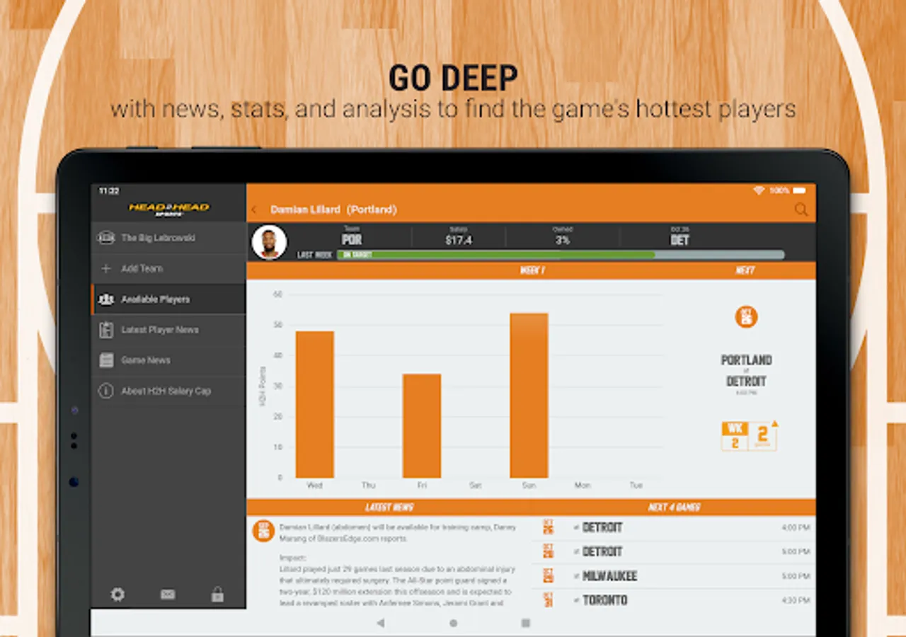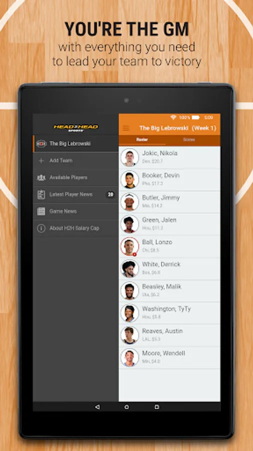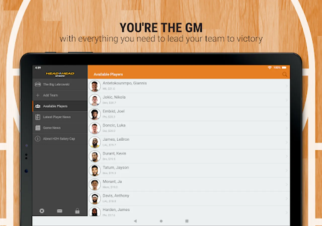 You are the owner, general manager, and coach of your very own 2023-24 pro basketball franchise. YOU decide the starters each week. Using an imaginary $100 million bank account, pick your team of 10 pro basketball players (any position), who you think will rack up the most points each week using the unique Head2Head scoring system. All of the players listed have been assigned a salary based on past performance and expected performance this season. Your players will earn Head2Head Fantasy Points based on their actual on-court performance.