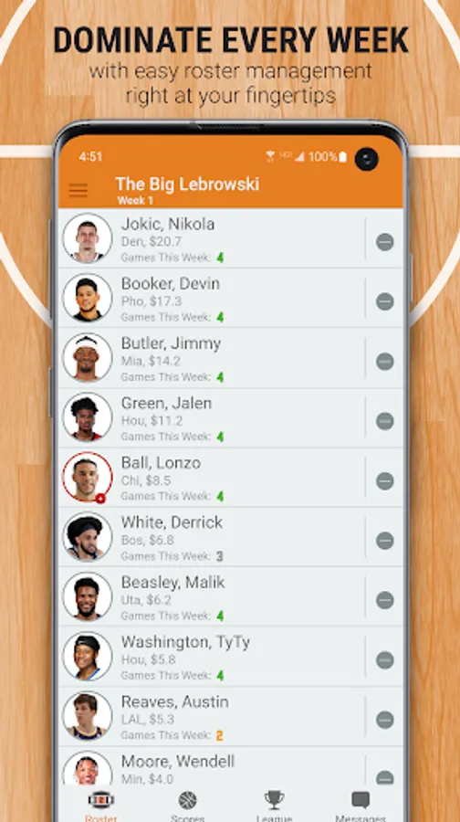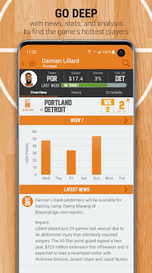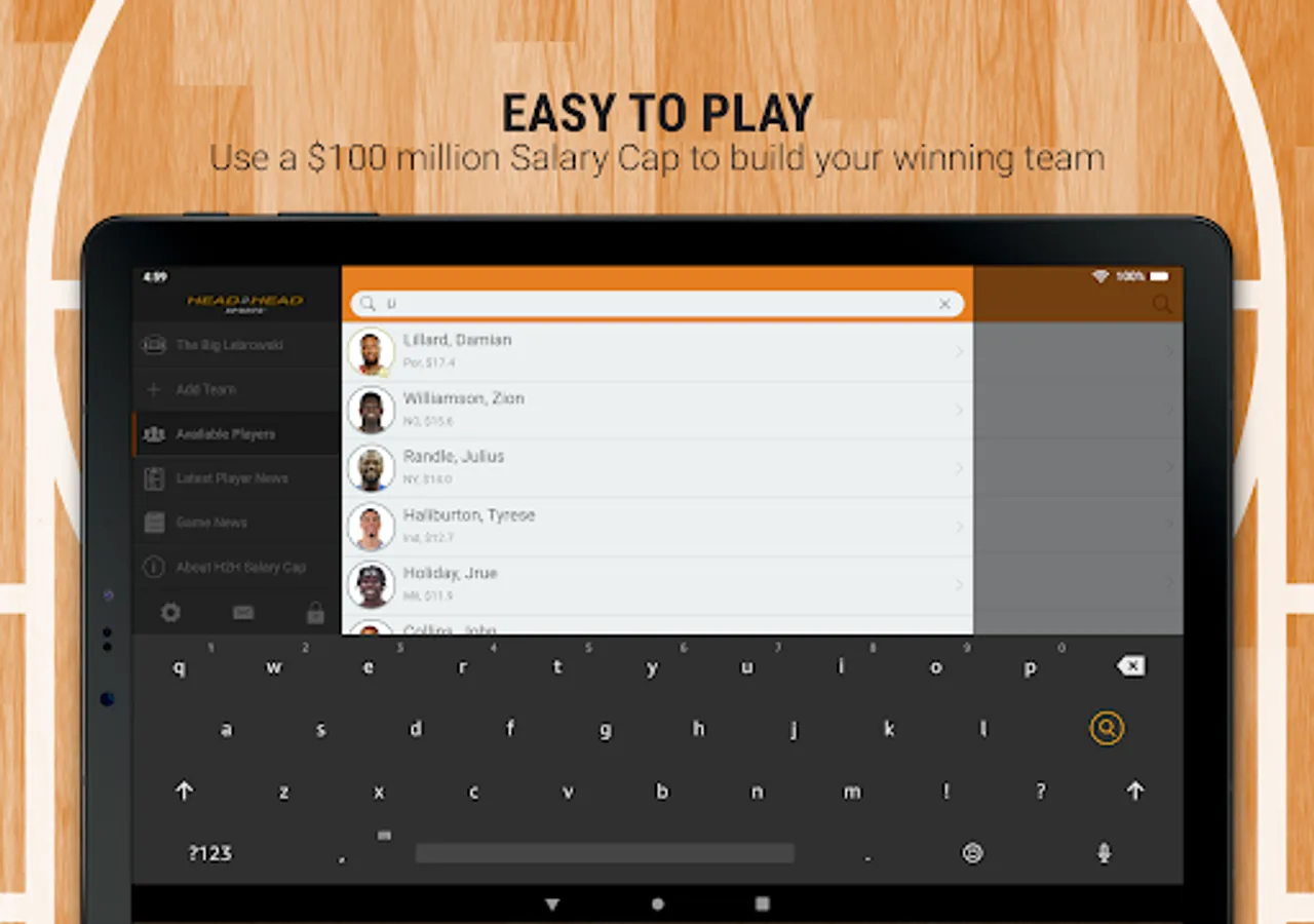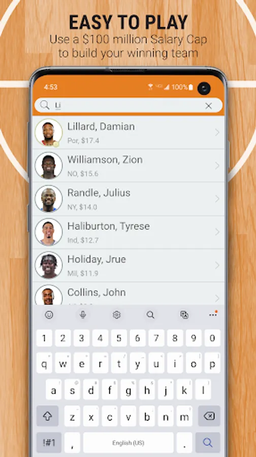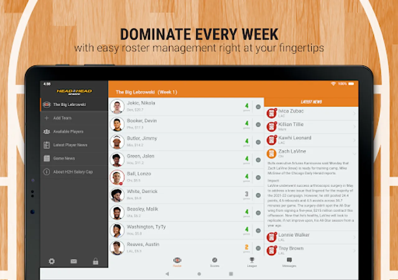 You are the owner, general manager, and coach of your very own 2023-24 pro basketball franchise. YOU decide the starters each week. Using an imaginary $100 million bank account, pick your team of 10 pro basketball players (any position), who you think will rack up the most points each week using the unique Head2Head scoring system. All of the players listed have been assigned a salary based on past performance and expected performance this season. Your players will earn Head2Head Fantasy Points based on their actual on-court performance.