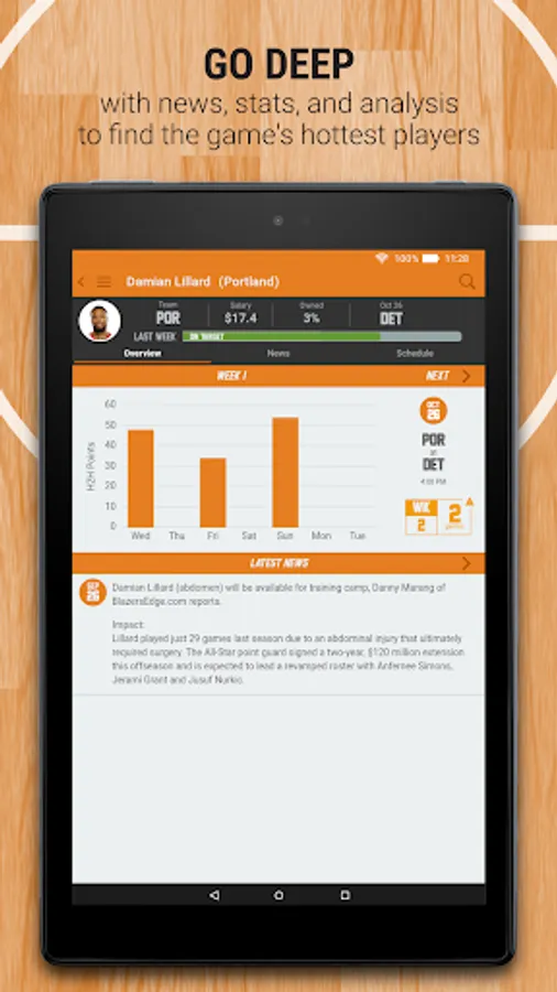 Each week you will receive personalized reports regarding the overall contest, including your head2head weekly boxscores and upcoming match-ups. Your opponents roster will appear after the final trading deadline each Wednesday at 10pm ET/7pm PT. Plus you'll receive full league standings, live scores, the weekly Top 100, Kellie's Lock of the Week and more!