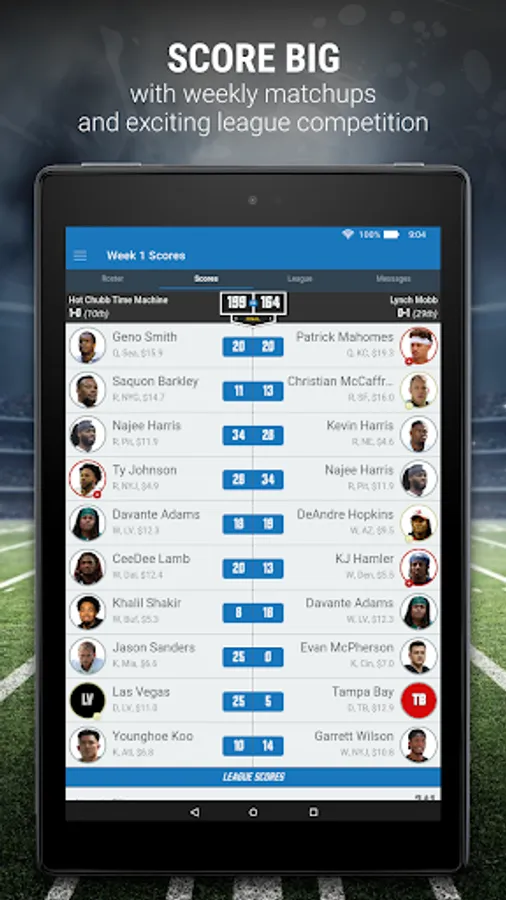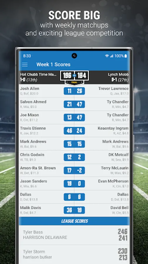 Each week, your players earn points for their actual on-field performance. Points are awarded according to the official H2H scoring system.