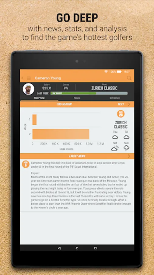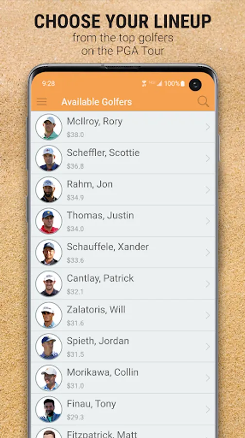 Using a salary cap of $100 Million, pick your team of 6 professional golfers that you think will rack up the most points each week. Points for each golfer are based on how much money they earn for each tournament ($1 = 1 point).
