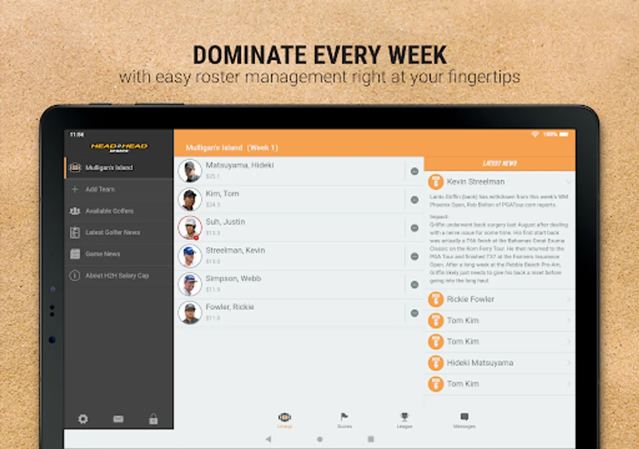 H2H Fantasy Golf is not sponsored, endorsed or administered by, or associated with the PGA or the PGA TOUR or Google and its affiliates. No purchase necessary. All entries must be received by Thursday, April 6, 2023 to be eligible to play.