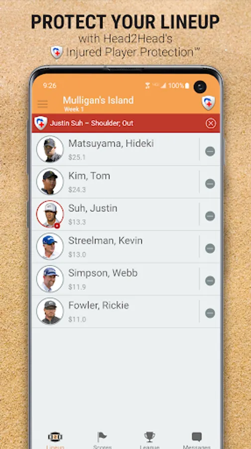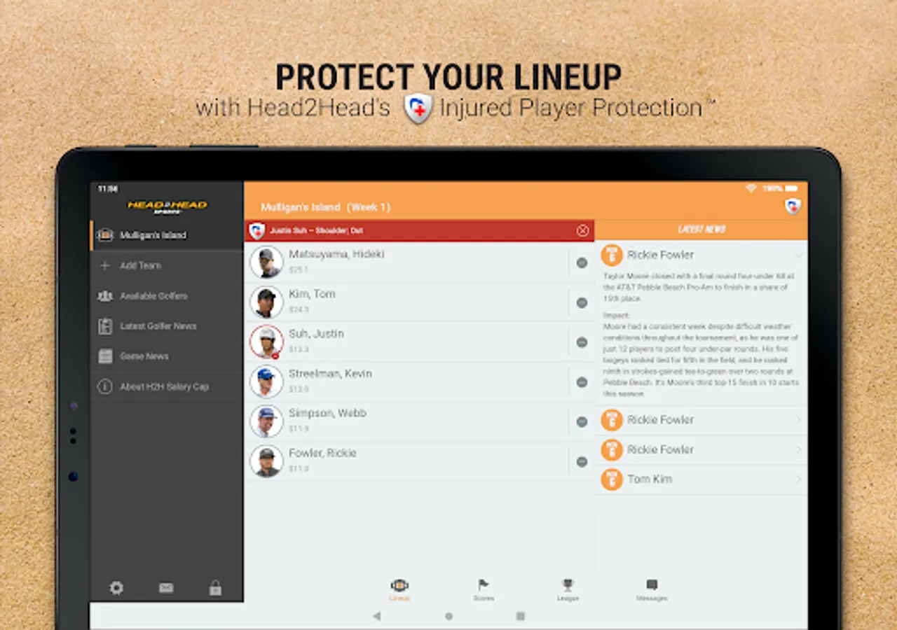 Sometimes the injury bug can be a bit unpredictable, tanking your chances for the week. But if you add H2H's Injured Player Protectionâ„ , you can sleep soundly knowing that if the unexpected happens to someone in your lineup during a tournament, you're automatically covered.