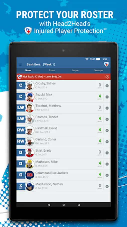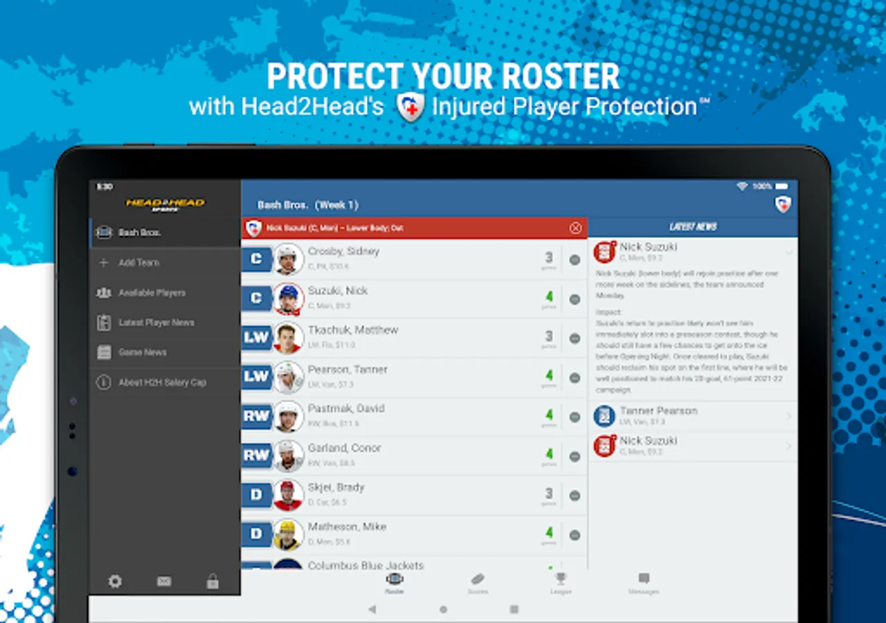 Freak injuries. Last-minute benchings. Canceled games. Sometimes the season can be a bit unpredictable. But with H2H's Injured Player Protectionâ„ , you can rest easy knowing that if the unexpected happens to someone in your lineup, you're automatically covered.