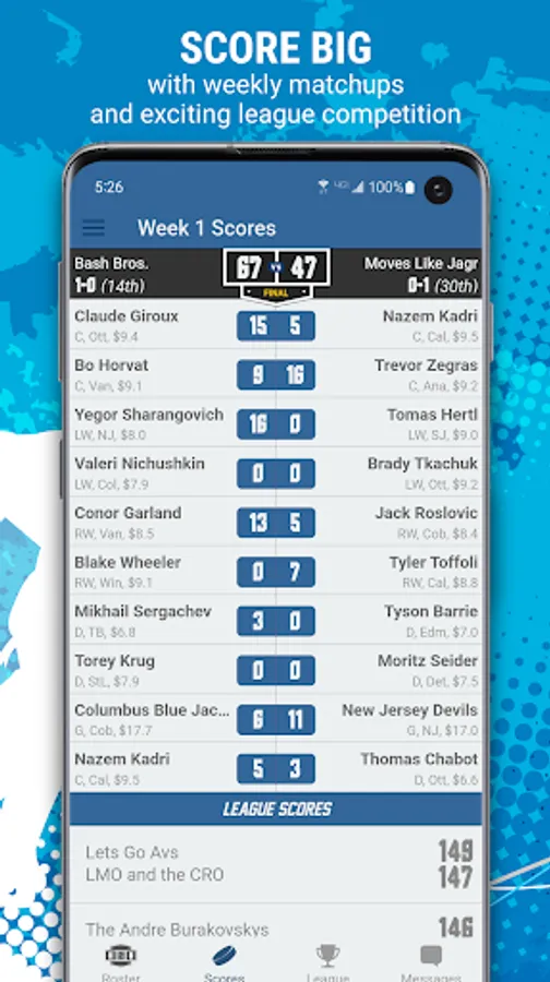 Each week you will receive personalized reports regarding the overall contest, including your head2head weekly boxscores and upcoming match-ups. Your opponents roster will appear after the trading deadline each period. You will also receive full league standings, scores, the weekly Top 100, Kellie's Lock of the Week and more!