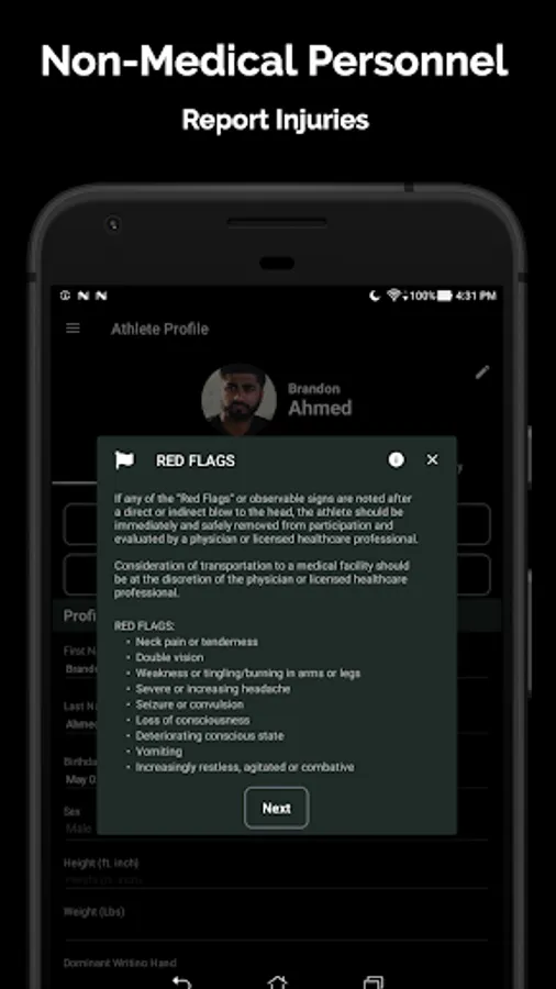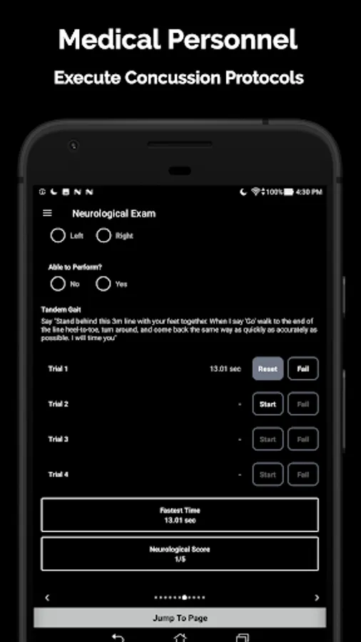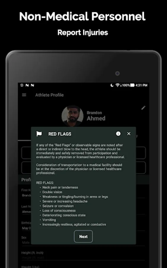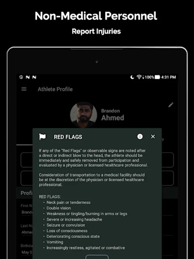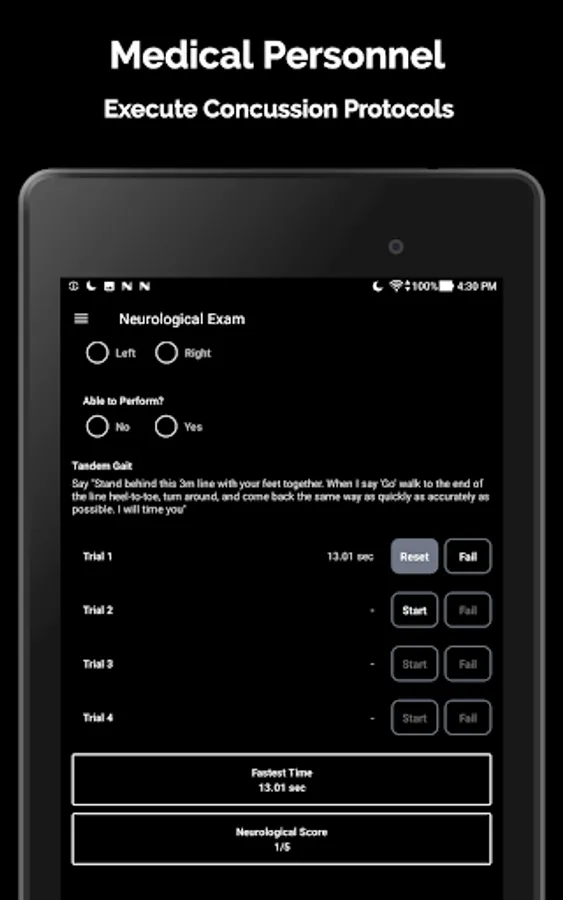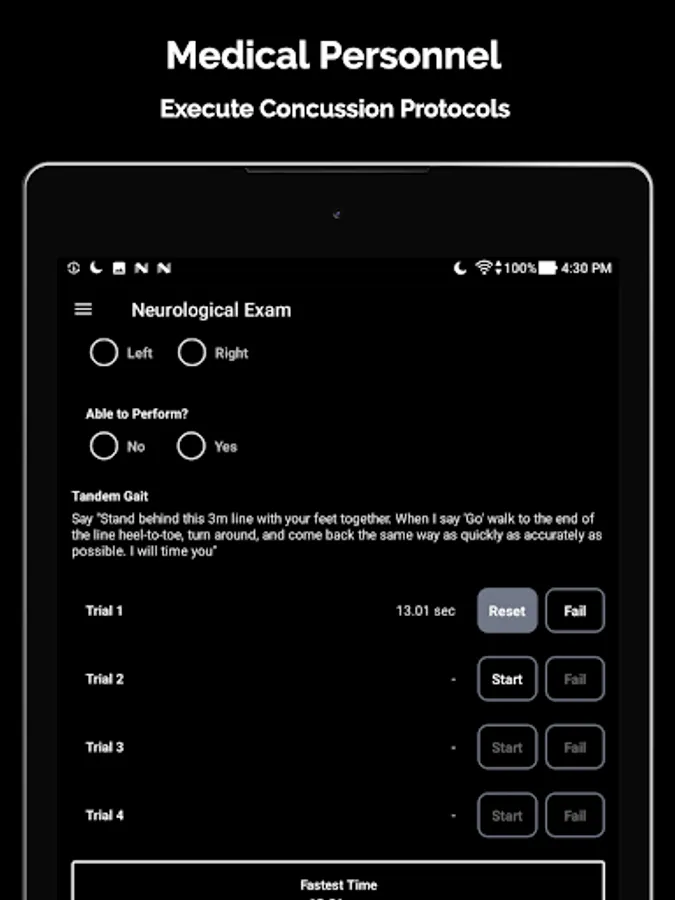HeadCheck includes today's best practices for concussion assessment by medical professionals and the recommended reporting process for non-medical professionals. If you are using HeadCheck with your organization, it's tailored to your qualifications and protocol.