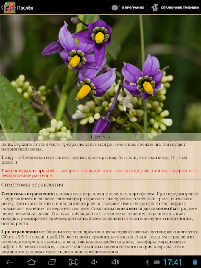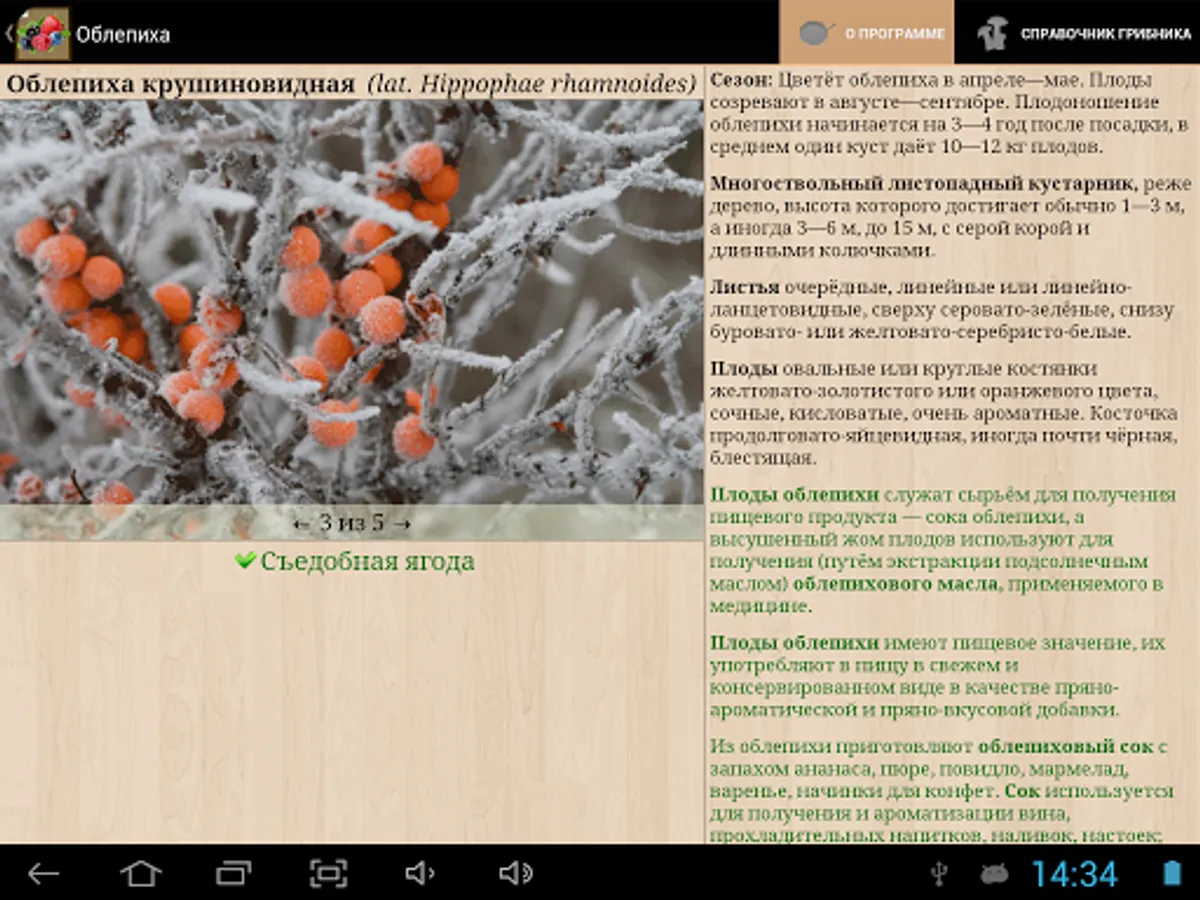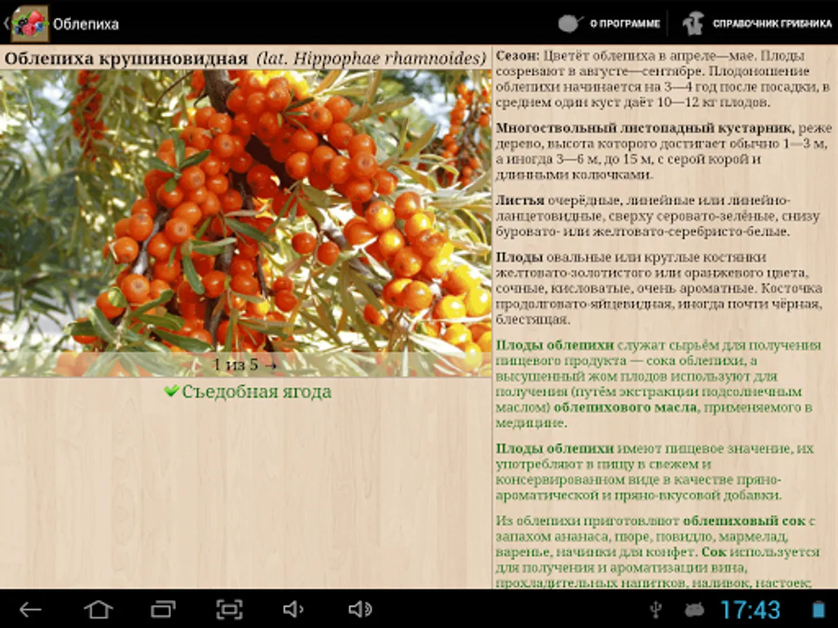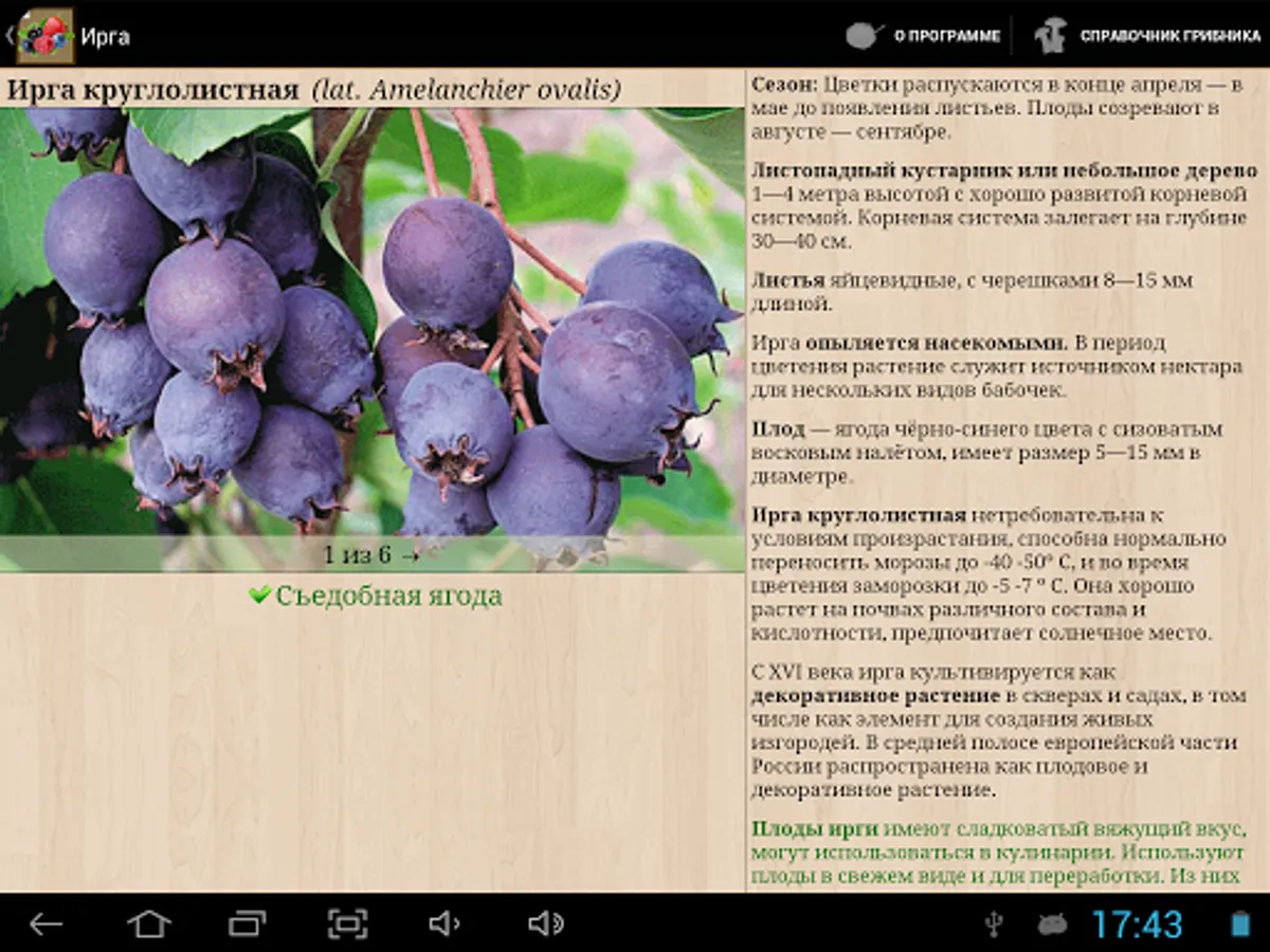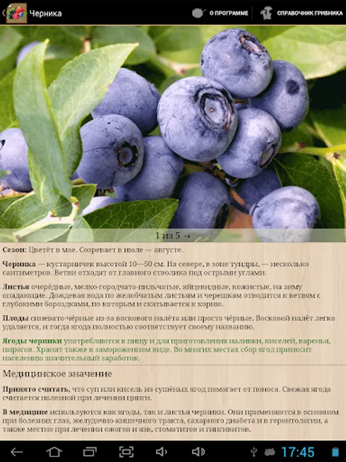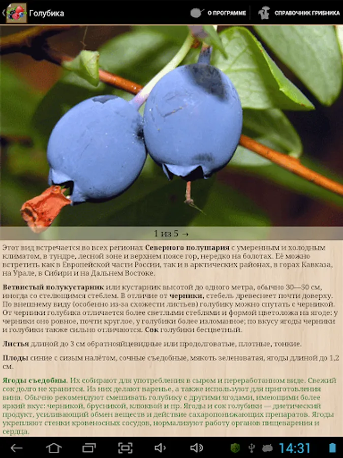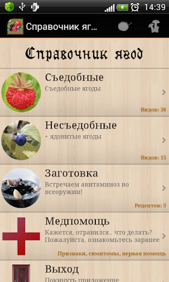 Directory berries - handy program, which provides information on the edible, non-edible as well as poisonous berries growing on the territory of Russia and abroad, as well as data on emergency measures in case of poisoning with poisonous berries.