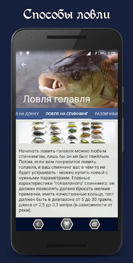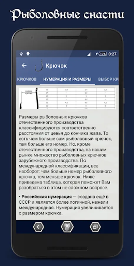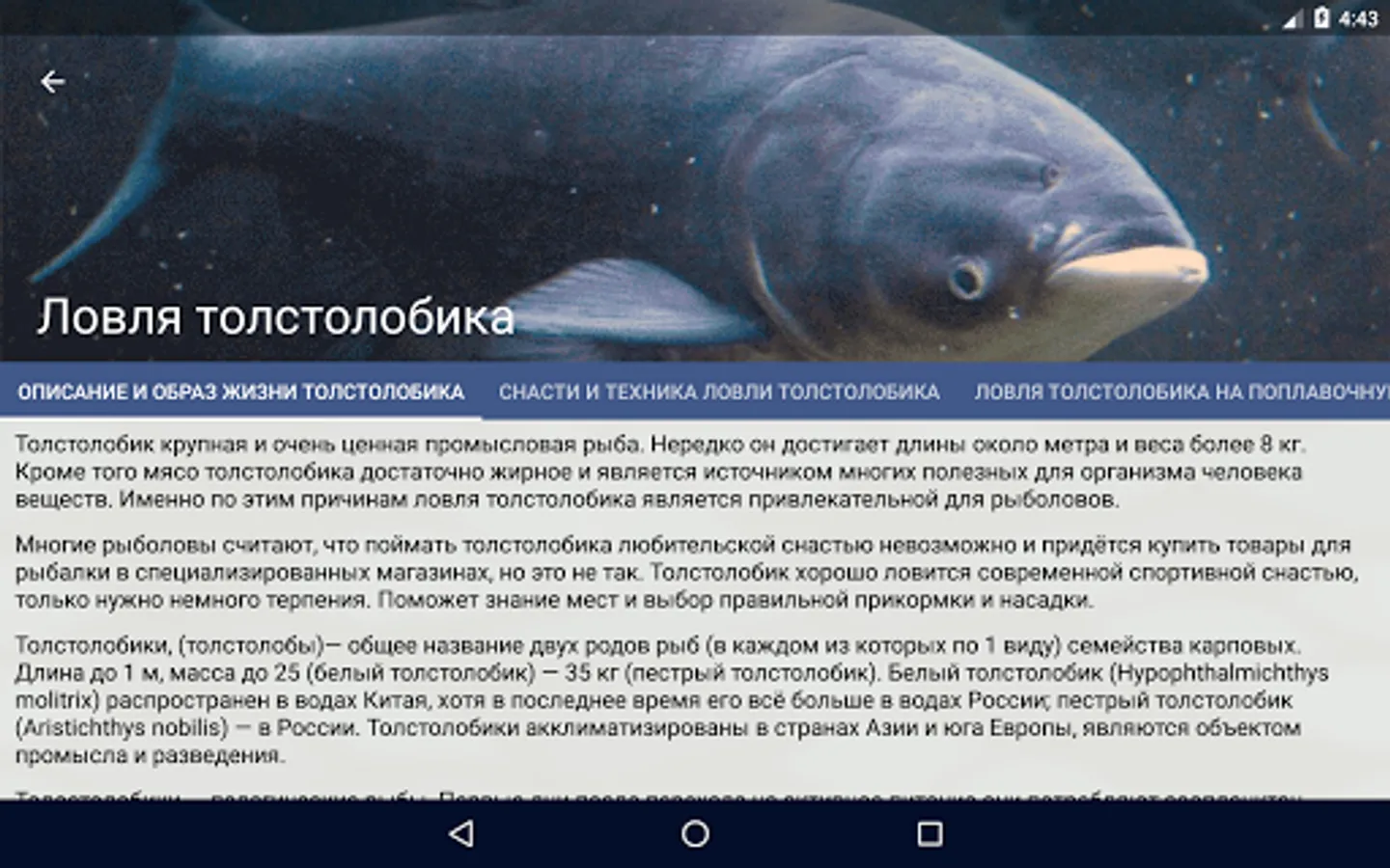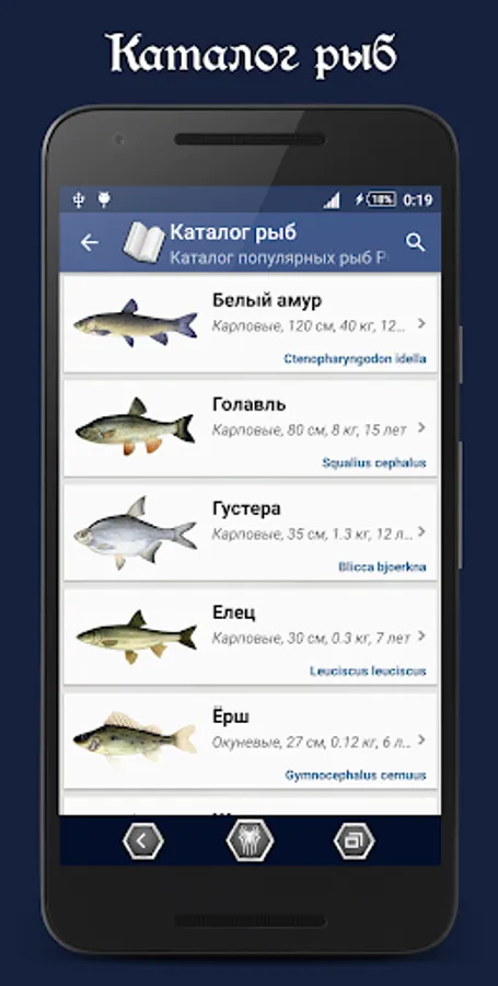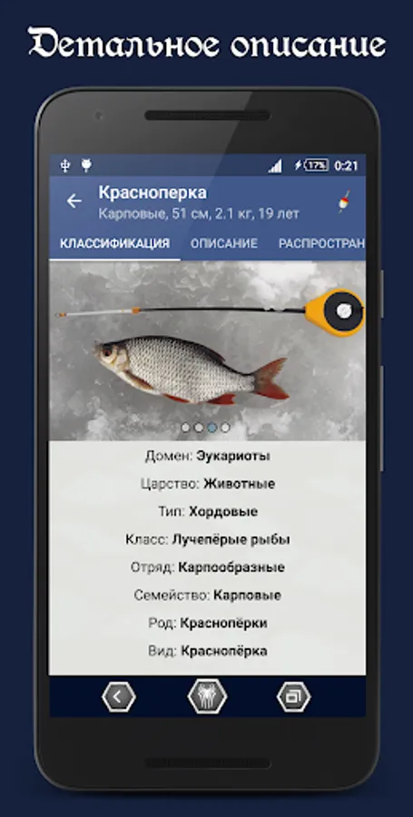 Directory fisherman - a reference application, focused on people in Russia and abroad. It provides information on the classification of fish habitat, age and size, habits, distribution, as well as the methods and time of fishing.