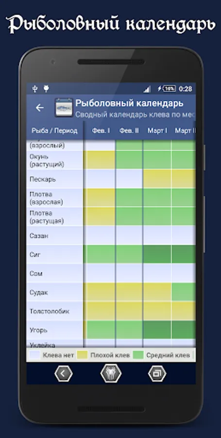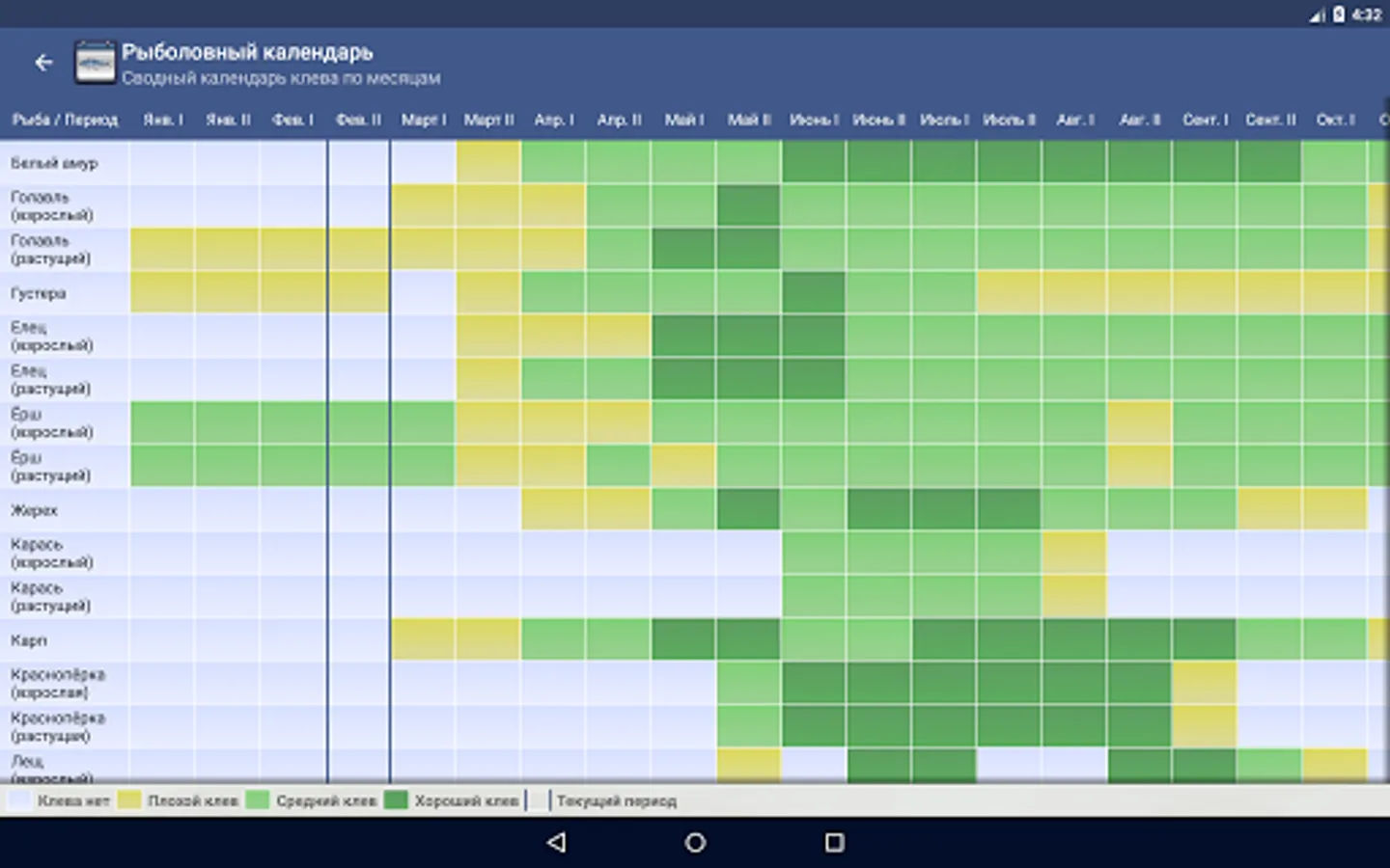 A good summary fishing calendar makes it easy to determine who can be caught in the current half of the month.