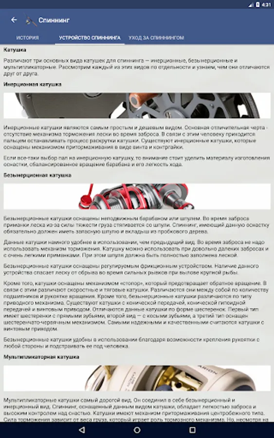 There is information on fishing gear, such as baits, jig, fly fishing, spinning, float fishing rod, rod feeder and many others.