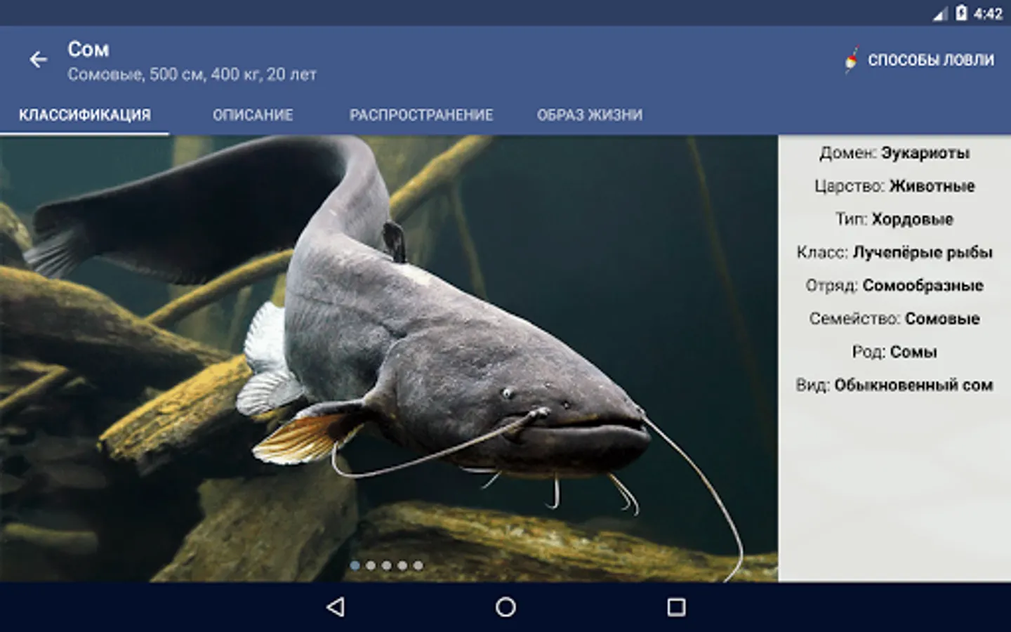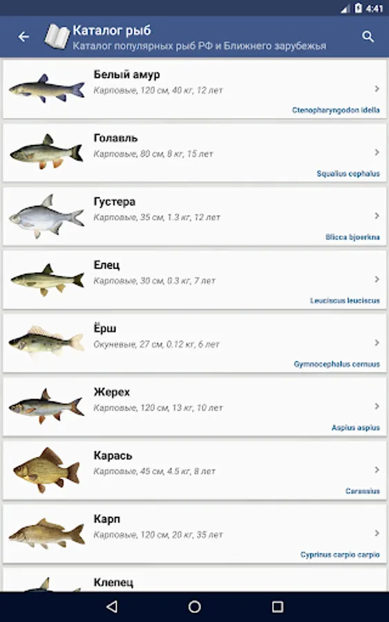Reference fisherman - a reference application, focused on people in Russia and abroad. It contains information on the classification of fish habitat, age and size, habits, distribution, as well as the methods and time of catching.