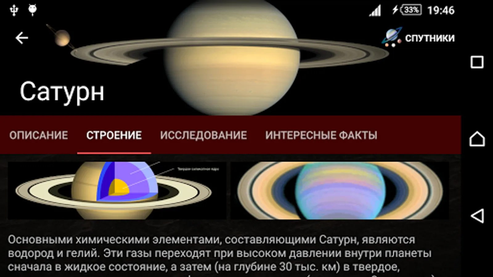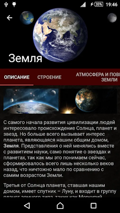 The annex describes the following stars, planets, dwarf planets and moons: Sun, Mercury, Venus, Earth (satellites Moon), Mars (moons: Phobos, Deimos), Jupiter (satellites: Io, Europa, Ganymede, Callisto), Saturn ( moons: Titan, Iapetus, Phoebe, Mimas, Enceladus, Hyperion, Pen, Tethys), Uranus (satellites: Titania, Oberon, Ariel, Umbriel, Miranda); Neptune (satellites: Triton, Proteus, Nereid), Pluto (satellites: Charon, Hydra, Nix).