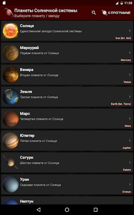 Planets of the Solar System - an educational application for the curious.
