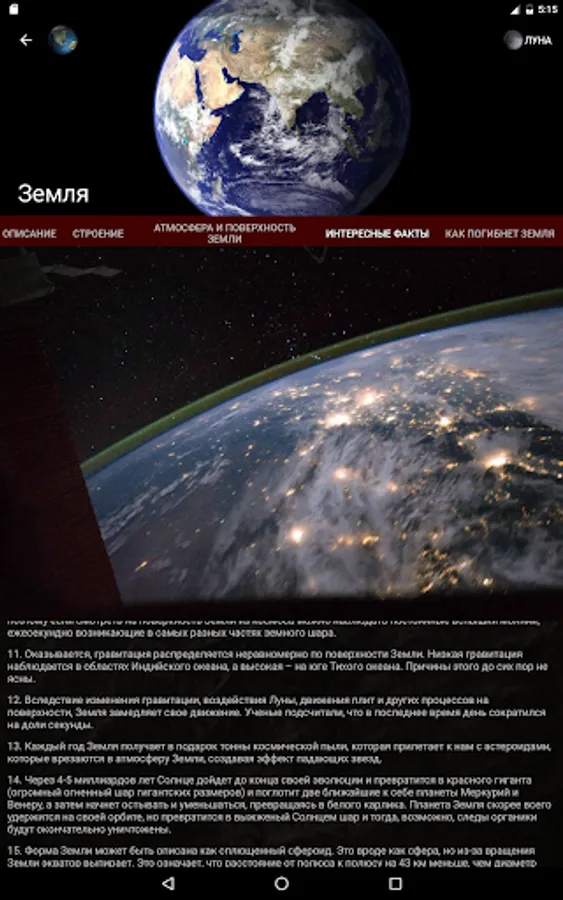 You will learn interesting facts about the sun, the planets of our system, their characteristics, structure, will see at what stage is the investigation of a particular planet.