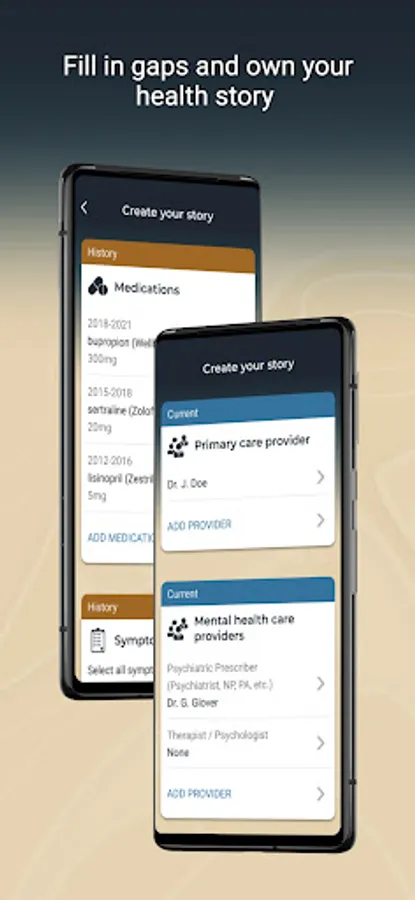 - Add providers, medications, symptoms, and more to your record
