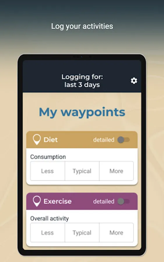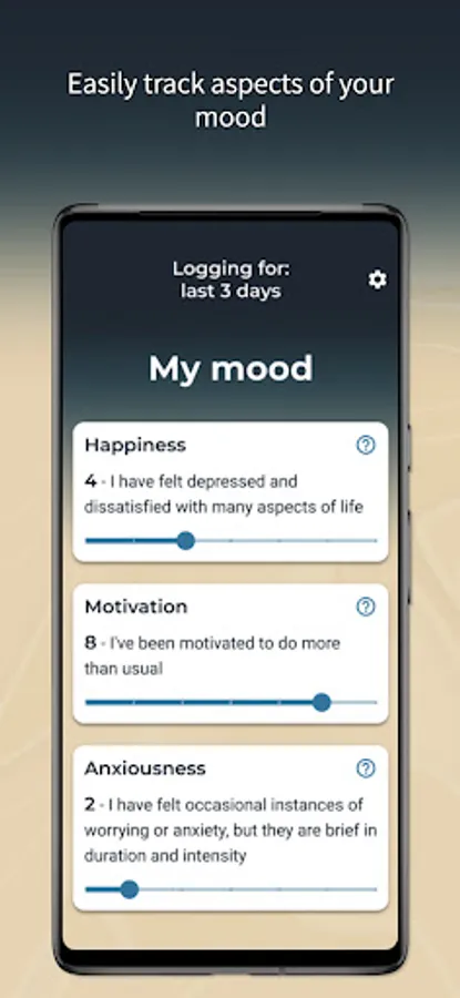 - Easily adapt your tracked behaviors as you learn more about what may be important to your mood