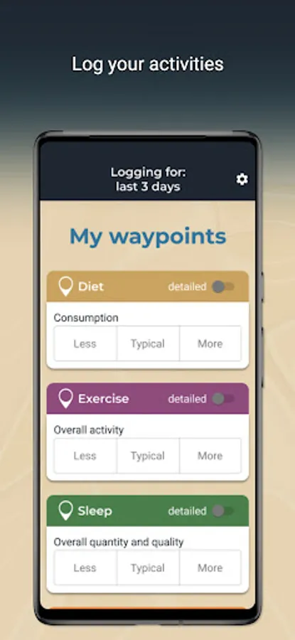 - Quickly log how you feel throughout the week on a schedule that you choose