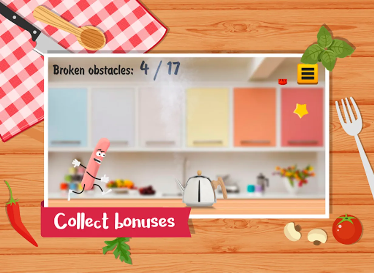 Sausage Run is a challenging runner-game. Help the Sausage to escape from the kitchen. Run for your life!