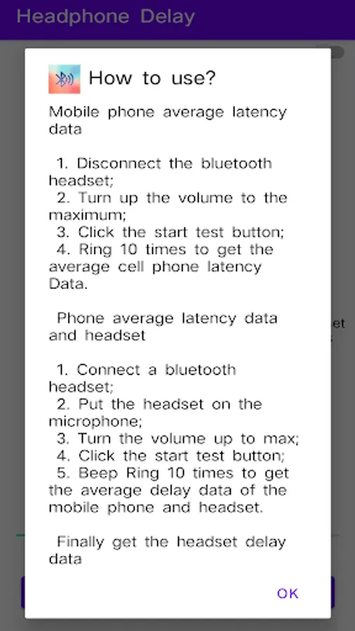 5. Beep Ring 10 times to get the average delay data of the mobile phone and headset.