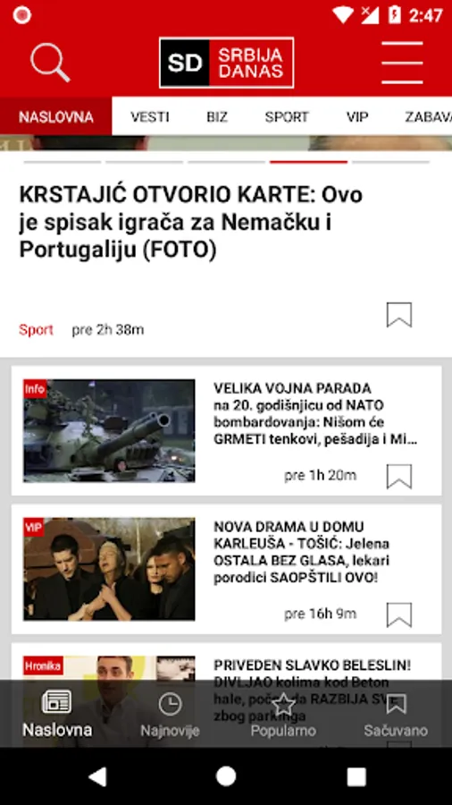 Keep up to date with the latest news from Serbia, the world, and the region with the android application of the web portal Serbia Today - http://www.srbijadanas.com. Learn about current affairs from the world of business, sports, well-known, culture, health, information technology and many others. Find your favorite topic among the categories and read the news in accordance with your interests.