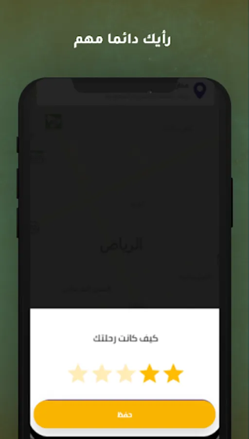 3-حدد نقطة الوصول لتقدير كلفة المشوار ستتلقى تأكيداً لحجزك مع تفاصيل الكابتن وموقعة تتبع المشوار في الوقت الفعلي وادفع بعد انتهاء المشوار.