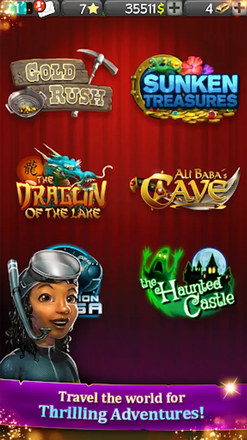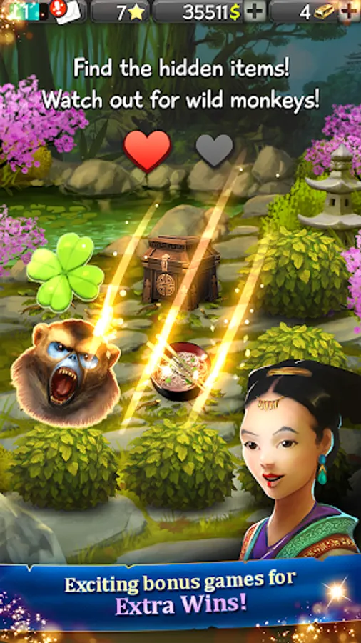 • Search for treasures in a smoothly flowing slot machine-like gameplay and reap instant rewards!