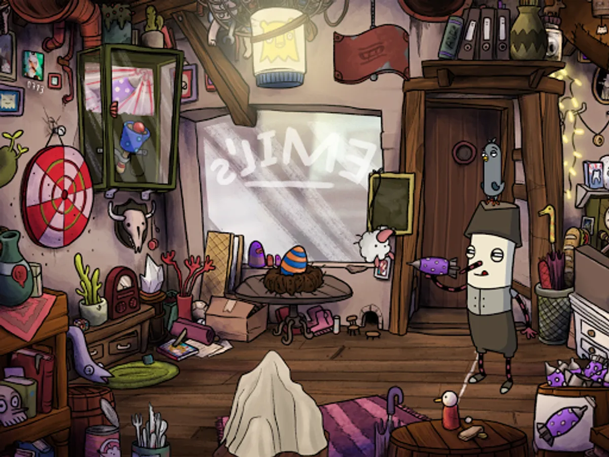 Solve mind-bending puzzles in a world full of mystery and save the family of the flute-noses! Their dynasty has been watching over Asposia for centuries on end. In secret, they fill the roly-poly world with light and life. But when their existence is discovered, they become hunted. Emil, a trader for odds and ends, made all the Asposians believe that the dynasty is in cahoots with dark forces. The only one who can stop the evil Emil is the heir to the throne: Robert. He has been petrified for three years, though. With a huge dose of enthusiasm, but little to no idea what he’s actually doing, he embarks on an adventure to find the legendary last wind monk. Of course, he has some great company: Peck, as loyal as he is flightless, and Laura, a rebel who certainly does fly, but only off the handle - and who Robert loves, with a capital L. Everything changes, when they meet the mysterious Mama Dola, who seems to know more about Robert’s destiny than Robert would like.