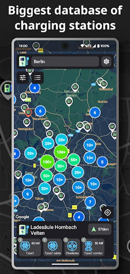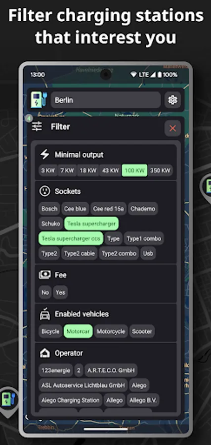 Easily filter charging stations according to your preferences by plug type, charging speed, EV type or charging provider.