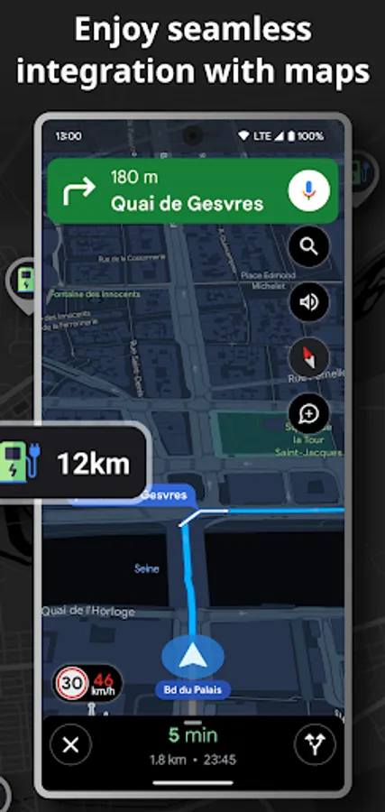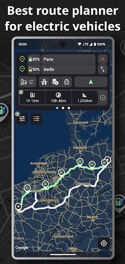 Get rid of the vehicle range anxiety and see the distance to closest charging station according to your preferences while navigating in Google Maps app.