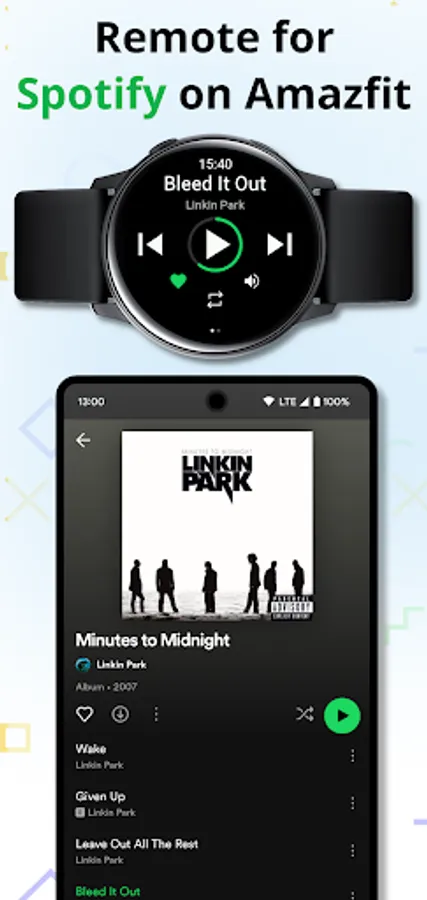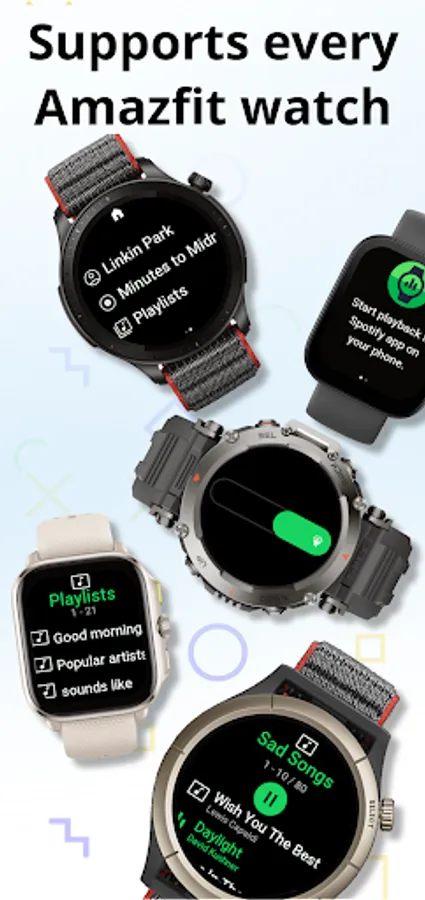 Remotify enables you to remotely control music playback and browse playlists from Spotify app on your phone with Amazfit smart watch. Remotify works even when your phone is offline or Spotify in offline mode.