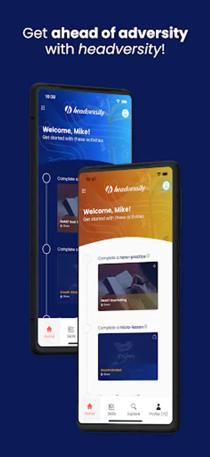 With headversity, it’s easy to discover what you want or need to improve, learn about foundational concepts, practice mental skills, measure how you’re doing along the way, and earn badges or simple high-fives for all the positive steps you’re taking to upskill your own mental health. Anytime. Anywhere. And in practical ways only.