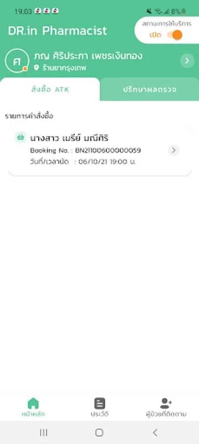 DR.in Pharmacist is an application for pharmacists. that come to use to provide consulting services to patients who want to order products, request consultations, and continuously monitor symptoms