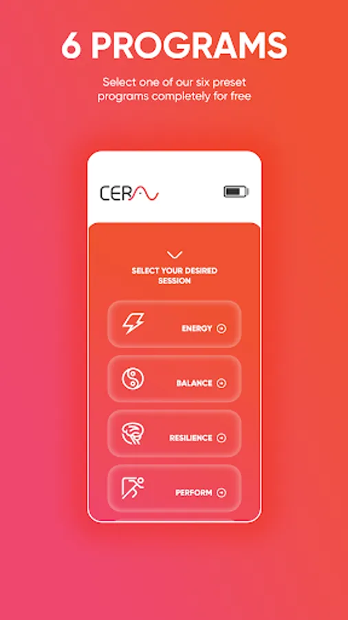 If you are the proud owner of your own CERA System you'll need the official CERA app in order to connect to the CERA Headband and use one of our preset programs. Personalize how you use the CERA System by picking a program that matches your specific wellness goals.