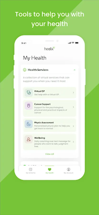Within the My Healix app you can access a collection of virtual services with a range of benefits and offers to support you and your health. The app ties up all the features of your scheme in one convenient place, ready for you to access whenever you need it.