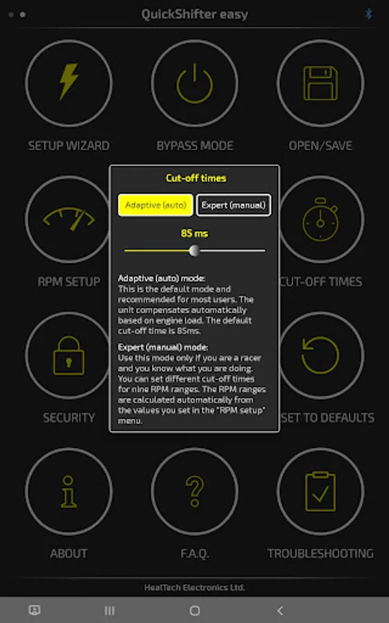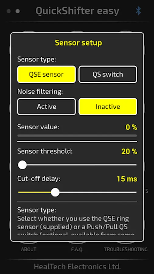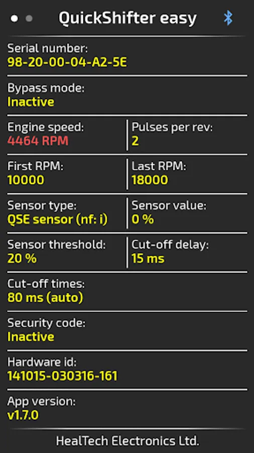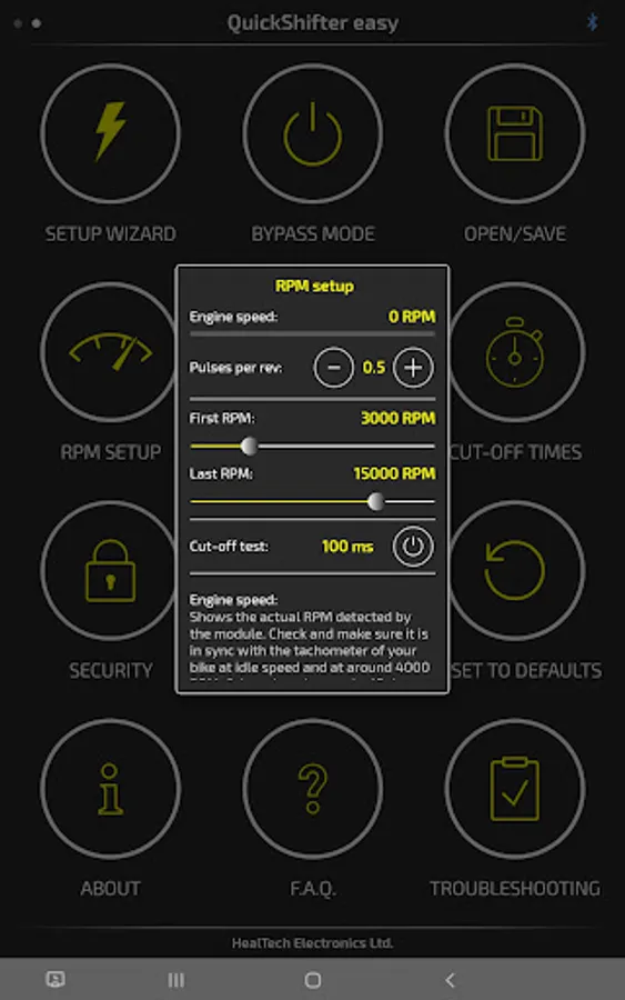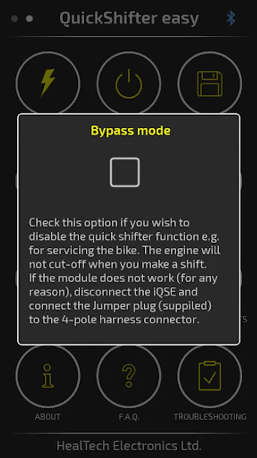 Use this application to control your QuickShifter easy (iQSE) module from HealTech through your Android device via Bluetooth.