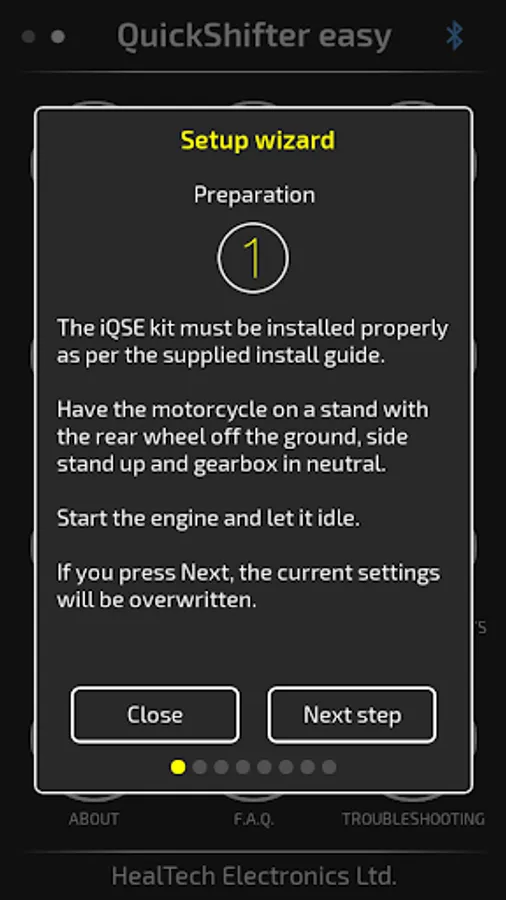 This app is compatible only with the QuickShifter easy module having part number: iQSE-1, iQSE-2 and iQSE-3