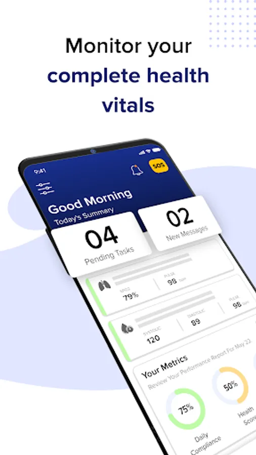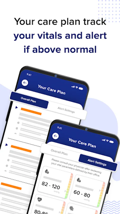 Your care plan will be created by your physician that may include taking different measurements(e.g. take daily Blood Pressure or Glucose), personalized alerts for your vitals, or other instructions. The app will send notifications at frequency defined by your physician and you would be required to complete those “tasks” on your main app screen. Once you