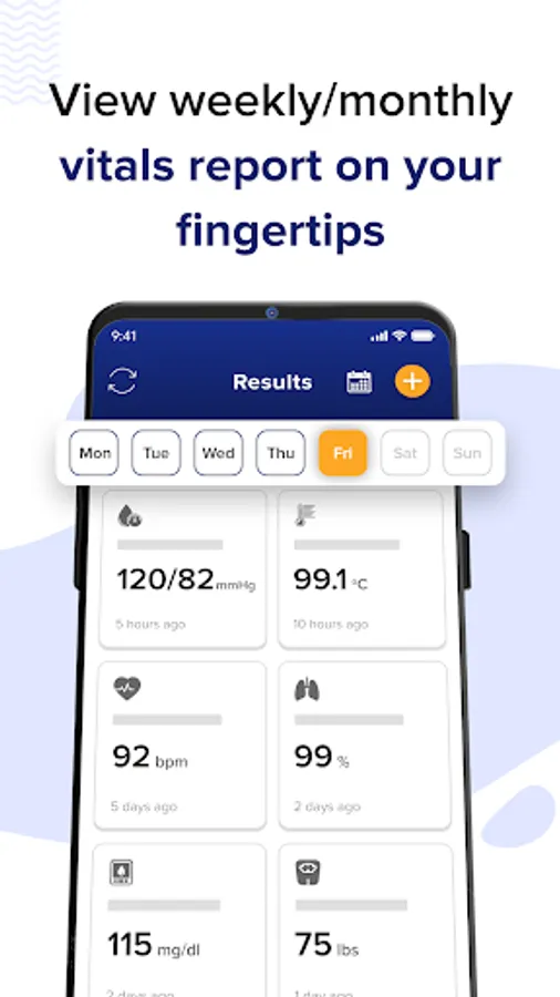 The vital info collected in the app will be made available for your Healthcare Provider. You can see your info on the Results tab.