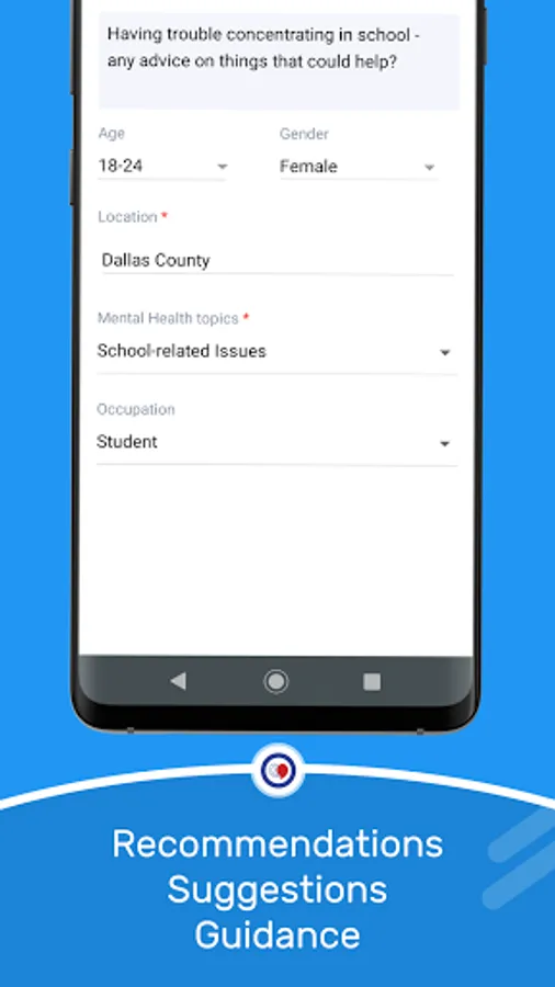 From students to teachers to police officers, recommendations and suggestions are just a group message away! Want to ask a fellow Mom in Dallas for advice regarding postpartum depression? Oros Health can do that! Easily ask other Oros Health users questions related to mental health wellness by location, gender, age, occupation, and more. Hop in and help others by answering their questions, as well!